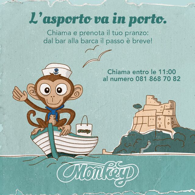 Direttamente sul Porto di Baia, Il Monkey offre la possibilità di fare una ricca colazione, pranzo, aperitivo, cena e dopocena...